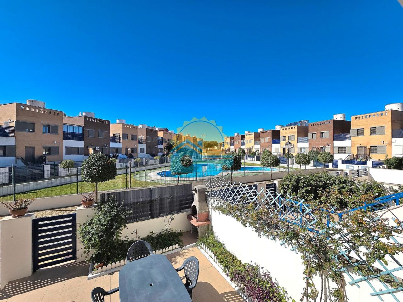 InmoUmbría oferta fantástico pareado en la zona centro comercial de Punta Umbría, vivienda muy próxima a centros de ocio y cadena de hoteles Barceló, con lo cual tendrás la arena de la playa a tan sólo 5 minutos a pie aproximadamente. Inmueble construido en 2008. Adentrándonos en él, observamos impresionante terraza además de generoso porche cerrado delantero. Consta de aire centralizado aportando frío en los meses más calurosos del año y calor en periodo de tiempo donde el clima es más bajo. La casa contiene 4 dormitorios con armarios empotrados y 3 baños. Cuenta con 194m2 repartidos en planta baja con 66 m2 distribuidos en amplio y luminoso salón-comedor, cocina de grandes dimensiones y claridad gracias a las dimensiones de las ventanas, dormitorio y baño con ducha. En cuanto a la primera planta, cuenta con 48 m2 distribuidos en 3 dormitorios todos ellos con armarios empotrados. El principal cuenta con baño integrado además de bañera y gran ventanal aportando luminosidad al mismo. Seguido de otro dormitorio, este dispone de salida hacia una terraza con vistas hacia las zonas comunes, finalmente dormitorio destinado a espacio de trabajo como oficina y baño. Por último, disponemos de garaje contando con 75m2 y armario de 5 puertas perfecto para almacenar todos aquellos enseres ¡Pero eso no es todo! la vivienda cuenta con solárium de uso exclusivo equipado con placas solares convirtiendo el hogar de gran eficiencia. También dispone de zonas comunes ideales para compartir tiempo en la agradable piscina o simplemente relajarte y disfrutar en el jardín. ¡Vivienda en perfectas condiciones lista para entrar a vivir! ¡No te lo pienses y ven a verla! No dude en visitarla y llámenos. Estamos en calle ancha nº72 de Punta Umbría y en calle Rafael López de Huelva, también podemos atenderle vía WhatsApp, e-mail, o bien al número de teléfono. En el precio de venta no están incluidos los honorarios profesionales de intermediación ni los gastos que originan toda compraventa. Si lo estima oportuno podemos facilitarle una estimación al detalle. Estos gastos corren por cuenta del comprador. La información publicitada es meramente informativa, pudiendo ser contrastada con catastro, con la escritura pública o con la correspondiente nota registral si así lo solicita. El anuncio podría estar sujeto a posibles errores, cambios de precio o retirada del mercado. Para los m2 exactos y posibles reformas recomendamos realice una tasación oficial y cuente con el asesoramiento de un arquitecto o un profesional acreditado del sector.